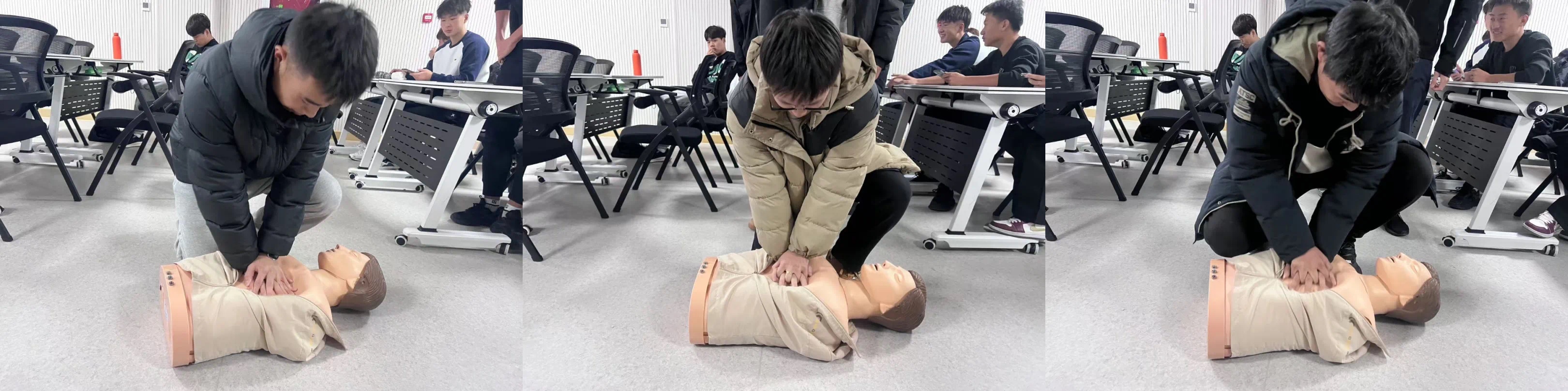 此次培训内容丰富全面,涵盖多个重要方面。老师通过理论授课和案例相结合的方式,向参训学生深入浅出地讲解:红十字运动基本知识、心肺复苏(CPR)、自动体外除颤器(AED)、气道异物梗阻急救以及创伤救护等应急救护知识和现场救护技能。在课堂上,老师不仅详细讲述了红十字运动的基本原则和救护理念,还通过生动的案例分析和情景模拟,让学员们深刻认识到及时有效的急救措施对于挽救生命的重要性。